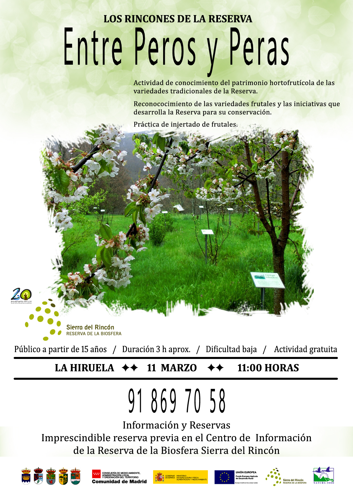 Para participar es necesario reservar previamente llamando al Centro de Información de la Reserva de la Biosfera Sierra del Rincón, teléfono 91 869 70 58.