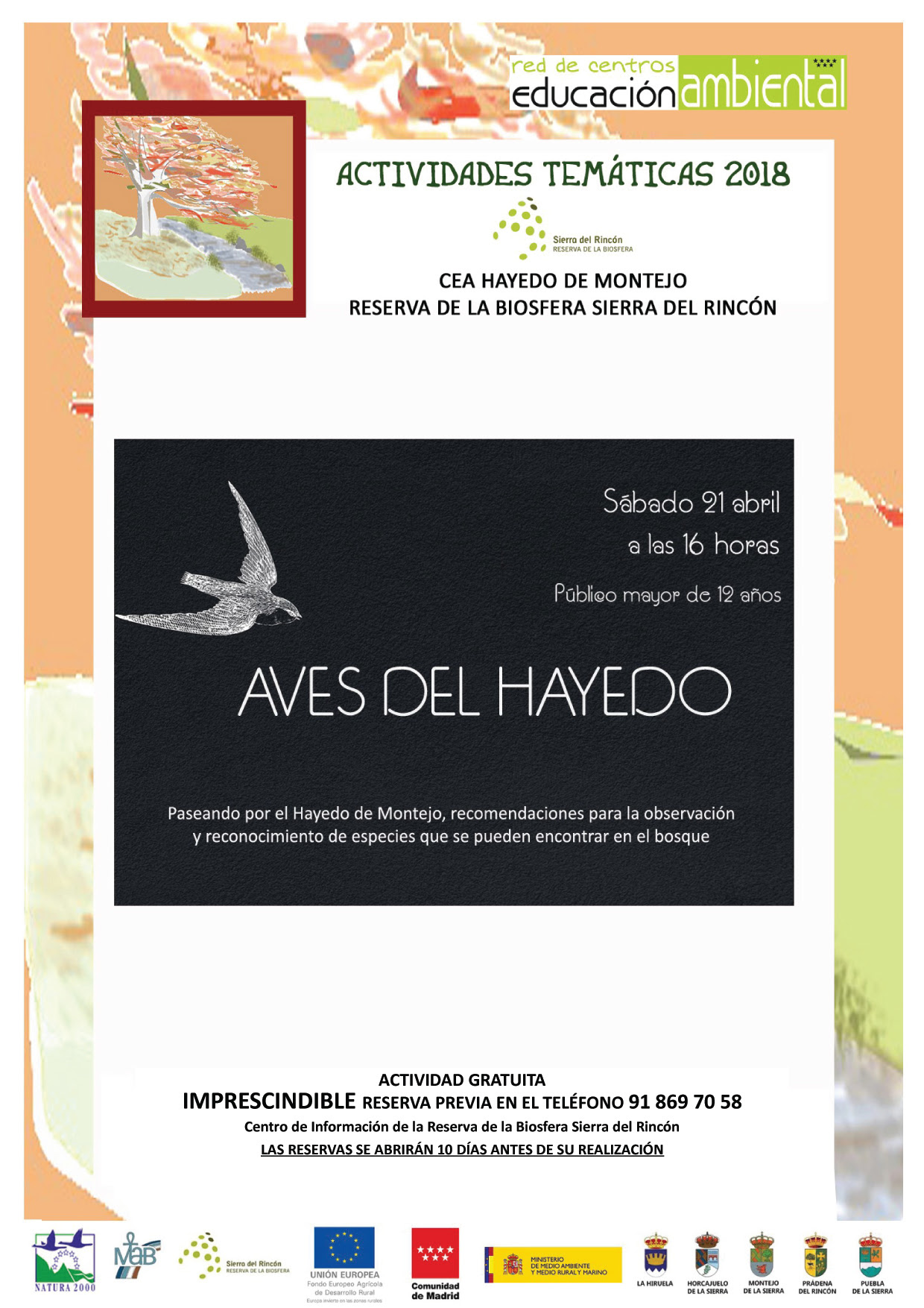 Imprescindible reserva previa en el Centro de Información de la Reserva de la Biosfera Sierra del Rincón en el teléfono 918697958.