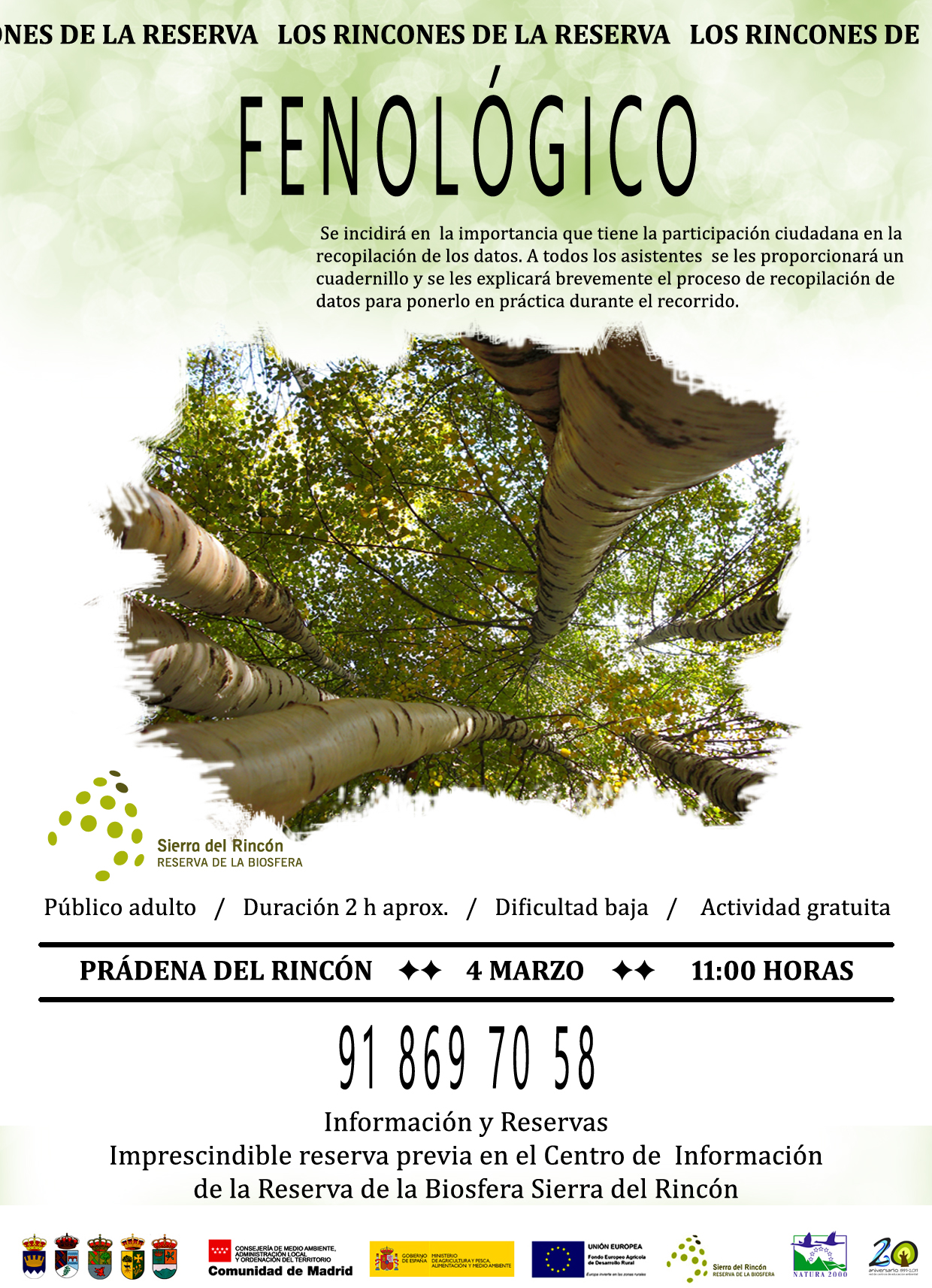 Para participar es necesario reservar previamente llamando al Centro de Recursos e Información de la Reserva de la Biosfera Sierra del Rincón, al teléfono 91 869 70 58.