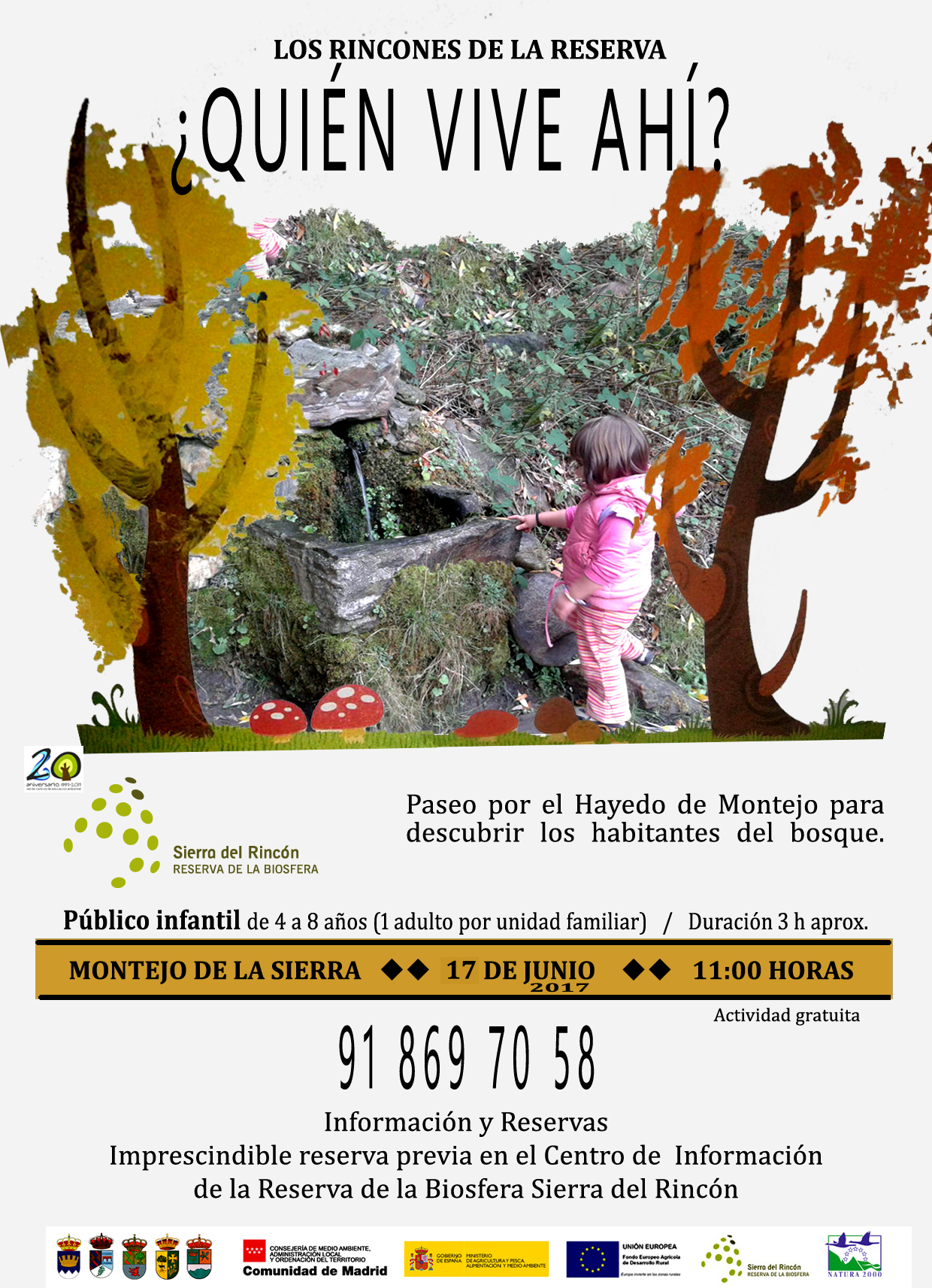 Es una actividad gratuita, dirigida a público infantil entre 4 y 8 años y para participar es imprescindible reservar previamente en el Centro de Información de la Reserva de la Biosfera Sierra del Rincón, teléfono 91 869 70 58.