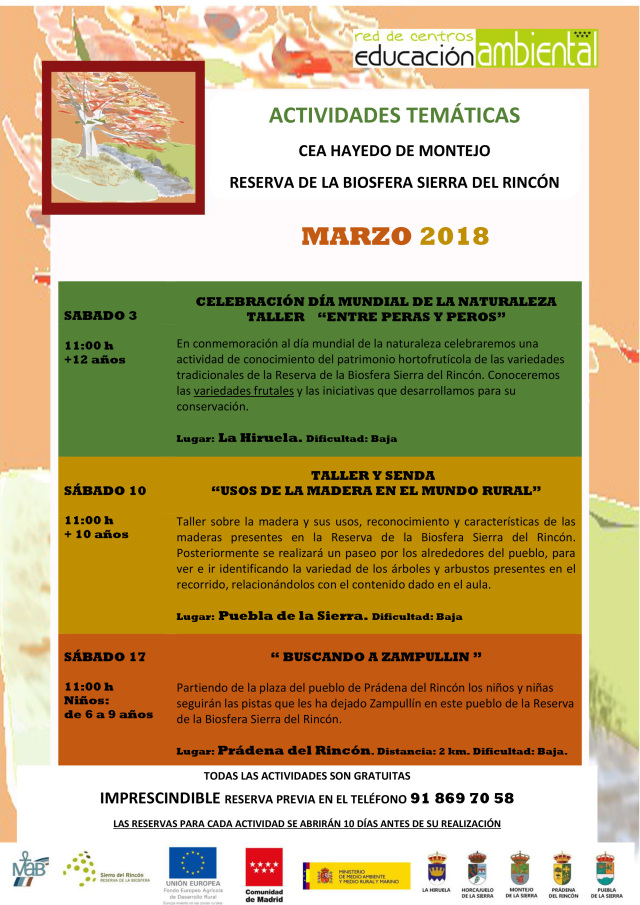 *Todas son actividades gratuitas organizadas y desarrolladas por el Centro de Educación Ambiental El Hayedo de Montejo.