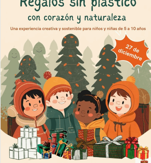 Taller infantil sobre creatividad basada en la naturaleza, donde además de sentir, crear y disfrutar, aprenderán sobre sostenibilidad, reducción de residuos, reutilización de materiales, cuidado de la naturaleza y el valor de los regalos hechos a mano.