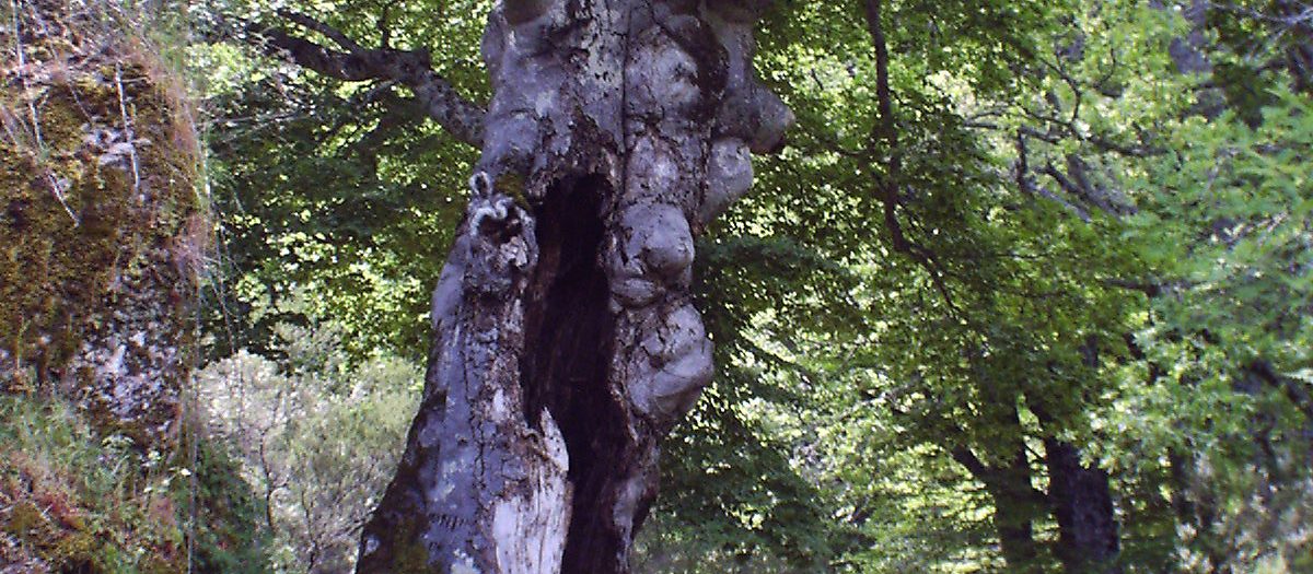 El próximo 1 de noviembre se cumplen veinte años de la caída de una de estas hayas: el “Haya Hueca”. Situada junto a la senda del río, en uno de los rincones más sugerentes y singulares de nuestro bosque, cubría y daba sombra a todos los que pasábamos junto a ella.
