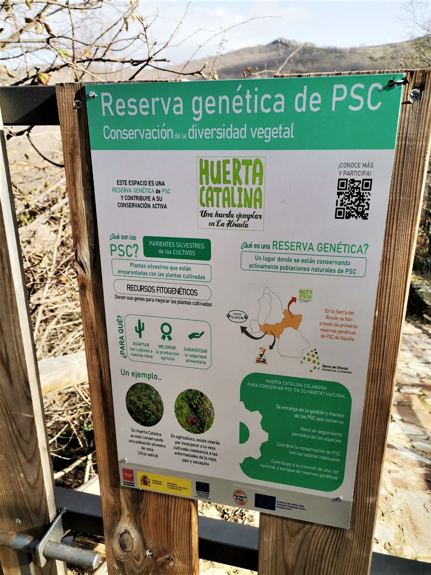 Cartel informativo sobre la reserva genética de PSC en Huerta Catalina (La Hiruela)