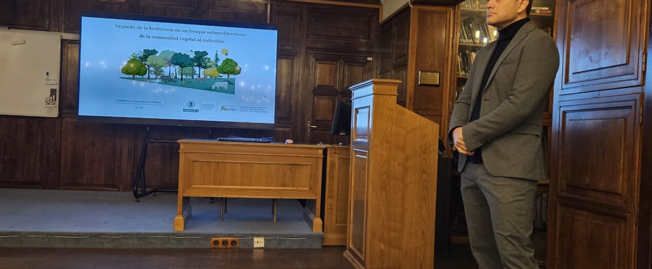 El pasado jueves, 29 de enero, se celebró en la Escuela de Montes el Acto de Defensa de la Tesis Doctoral de Guillermo González Gordaliza: “Impacto de la herbivoría en un bosque submediterráneo: de la comunidad vegetal al individuo”, dedicada y realizada en «El Chaparral». Con él ha conseguido la titulación de Doctor en Ingeniería de Montes, obteniendo una calificación de «Sobresaliente Cum Laude».