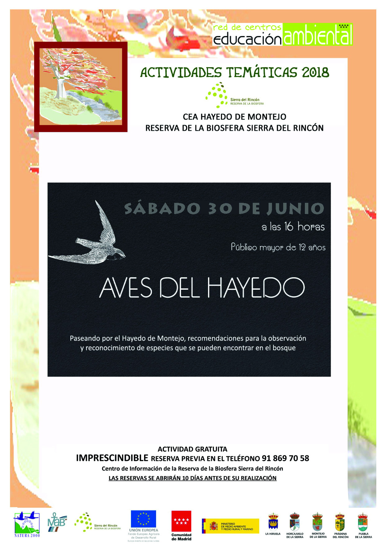 Para participar es imprescindible reserva previa en el Centro de Información de la Reserva de la Biosfera Sierra del Rincón, en el teléfono 918697058.